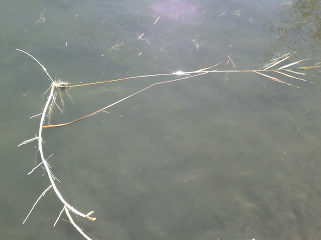 Ci contre : Phragmite australis fraîchement arraché. La partie souterraine forme des stolons qui permettent à la roselière de s’étendre et de créer des zones denses.