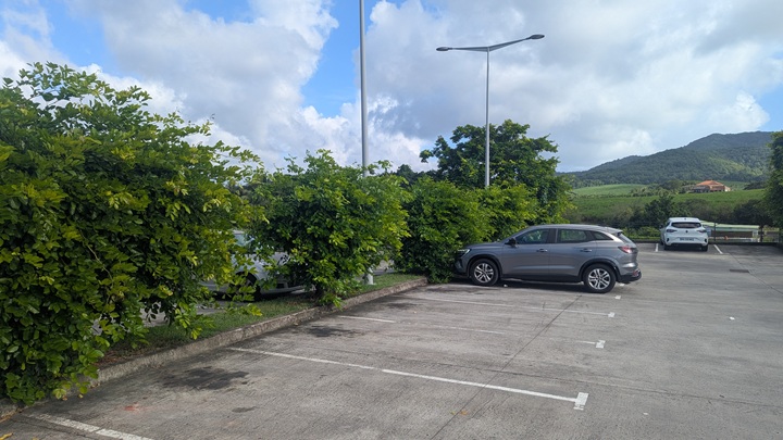 En revanche, dans l’exemple ci-dessous, les pongames n’ont pas été formés en arbres mais taillés au taille-haie afin de limiter leur développement vers les véhicules et de les contenir dans la plate-bande. L’aménagement du parking perd alors totalement sa fonction initiale.