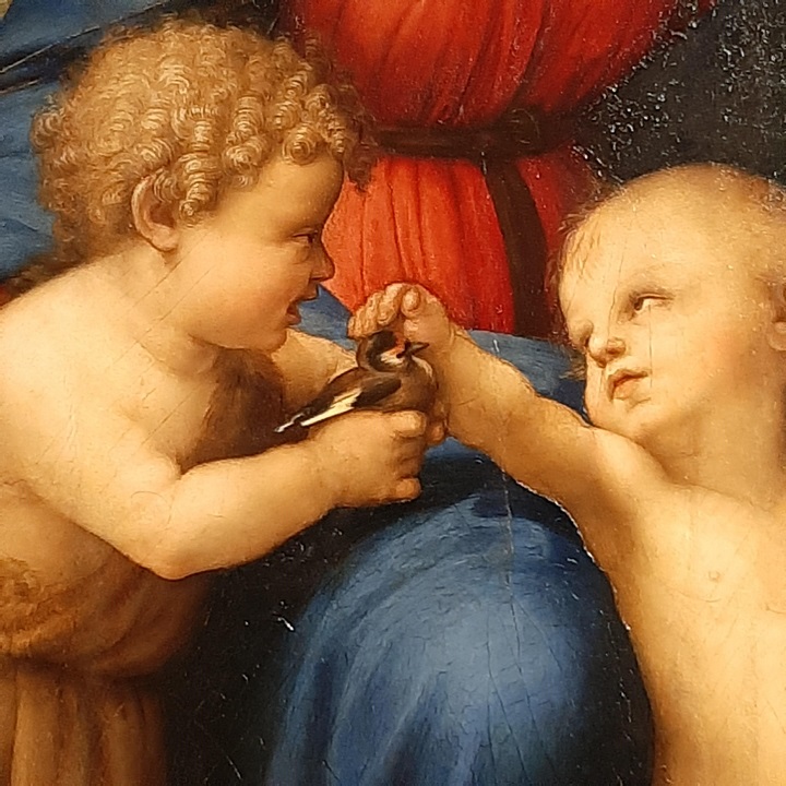 Chardonneret (espèce indigène) dans un tableau de Raffaello Sanzio, 1506. La vierge au chardonneret